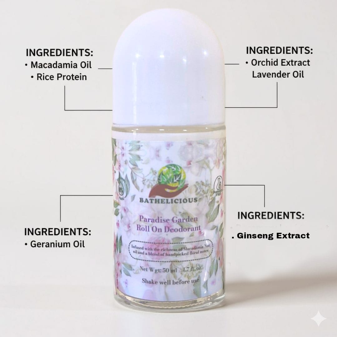 Discover freshness and confidence with the Bathelicious Roll-On Deodorant Combo, crafted for men and women. The Paradise Garden Roll-On pampers delicate underarm skin with floral, soothing care, while the Into The Woods Roll-On offers long-lasting protection with a rich, woody scent. Both formulas are enriched with botanical oils, herbal extracts, and proteins that nourish, calm, and protect the skin all day long.