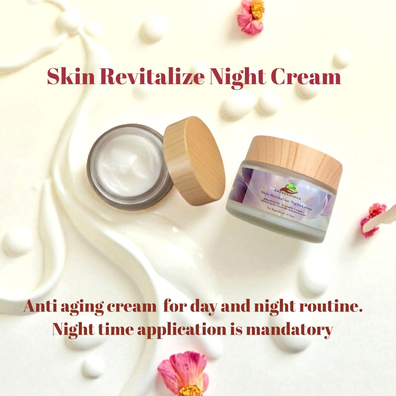 Wake up to youthful, radiant skin with our Skin Revitalize Night Cream. Enriched with Bakuchiol Oil, Ceramide Complex, and Milk Protein, it deeply nourishes, firms, and repairs the skin overnight. This gentle, non-greasy formula restores elasticity, smooths fine lines, and strengthens the skin barrier for a plump, refreshed morning glow.