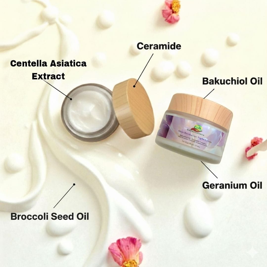 Wake up to youthful, radiant skin with our Skin Revitalize Night Cream. Enriched with Bakuchiol Oil, Ceramide Complex, and Milk Protein, it deeply nourishes, firms, and repairs the skin overnight. This gentle, non-greasy formula restores elasticity, smooths fine lines, and strengthens the skin barrier for a plump, refreshed morning glow.